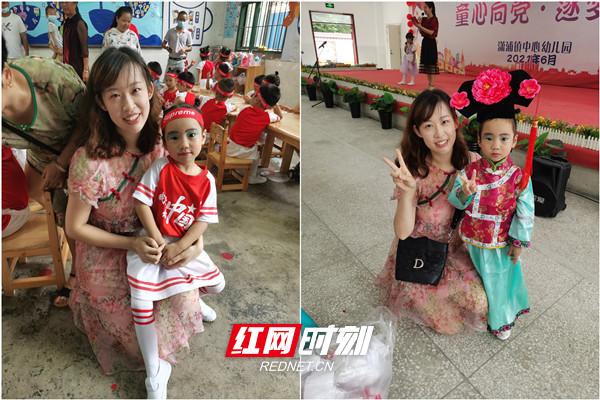 “六一”汇演中,申夏媛抱着徐诗涵合影。