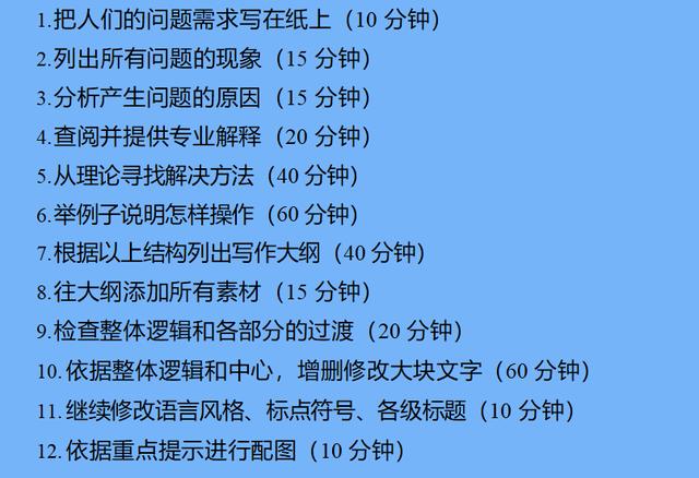 做过?次这样的分解细化以后,每次看到这张清单就可以做习惯化操作。这样既可以节省思考的精?,也能减轻?理负担,消除畏难情绪,战胜写文章的拖延症。